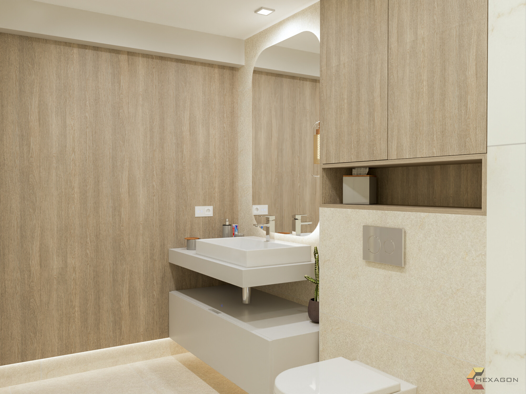 Dormitorul matrimonial beneficiază de o baie proprie, oferind intimitate și un refugiu personal pentru părinți. Camerele copiilor sunt gândite pentru a le reflecta personalitatea și a le oferi un mediu prietenos și confortabil, completat de o baie separată, creată special pentru ei. Întreaga casă a fost proiectată pentru a îmbina estetica modernă cu elementele naturale, rezultând un spațiu care inspiră relaxare, funcționalitate și sentimentul de „acasă”.