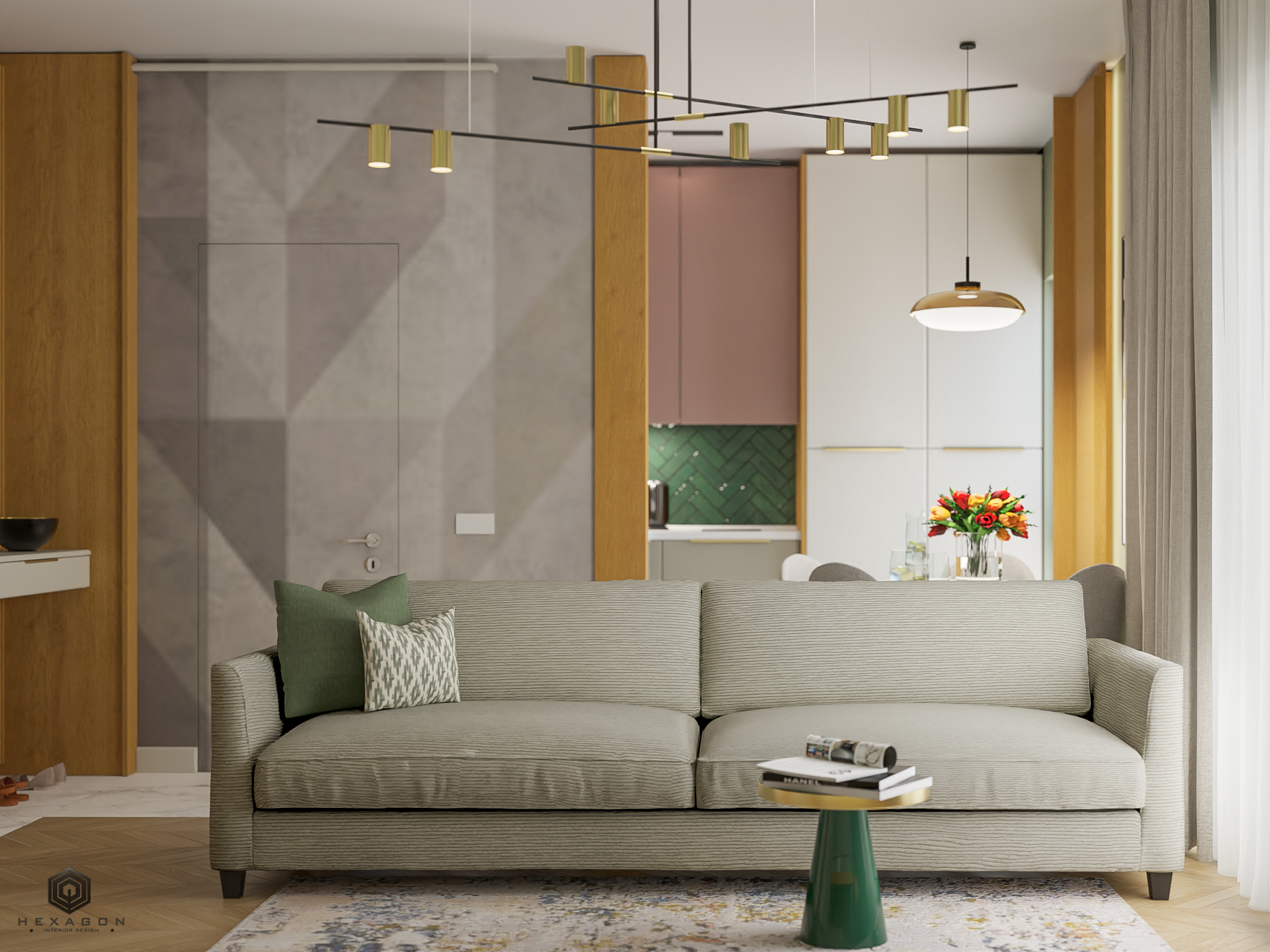 Apartamentul, situat în Prima Vista și având o suprafață de 40 mp, a fost proiectat special pentru închirieri în regim hotelier în zona de nord, având ca scop crearea unui spațiu confortabil și practic pentru oaspeții săi. Alegerea paletei de culori vibrante a fost făcută cu intenția de a aduce o atmosferă calmantă, dar totodată de a oferi un decor energizant. Întregul spațiu a fost conceput pentru a oferi confortul necesar, fiind complet utilat pentru o ședere plăcută.